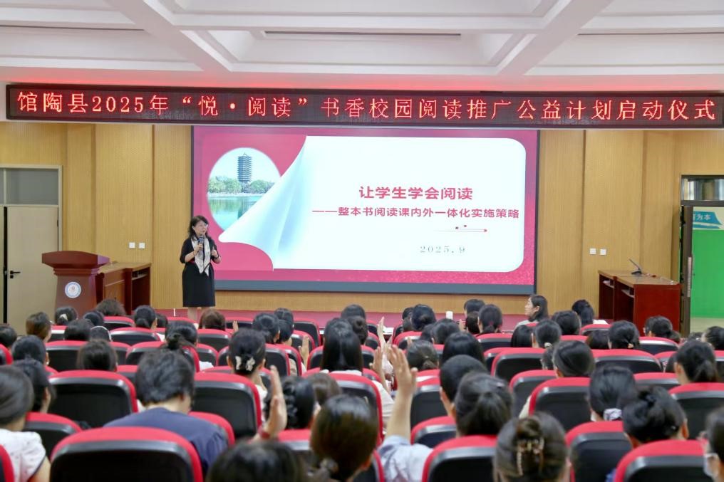 中新网河北新闻9月12日,河北省邯郸市馆陶县举办2025年“悦·阅读”书香校园阅读推广公益计划启动仪式。本次活动由中华文学基金会支持,馆陶县教育体育局主办,旨在全面推进青少年学生读书行动,营造爱读书、读好书、善读书的校园文化氛围。