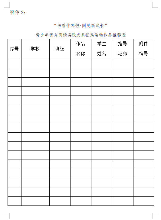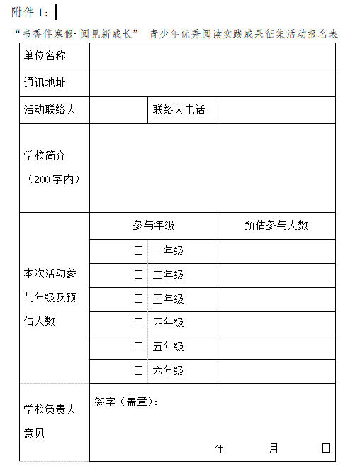 1.“书香伴寒假・阅见新成长” 青少年优秀阅读实践成果征集活动报名表