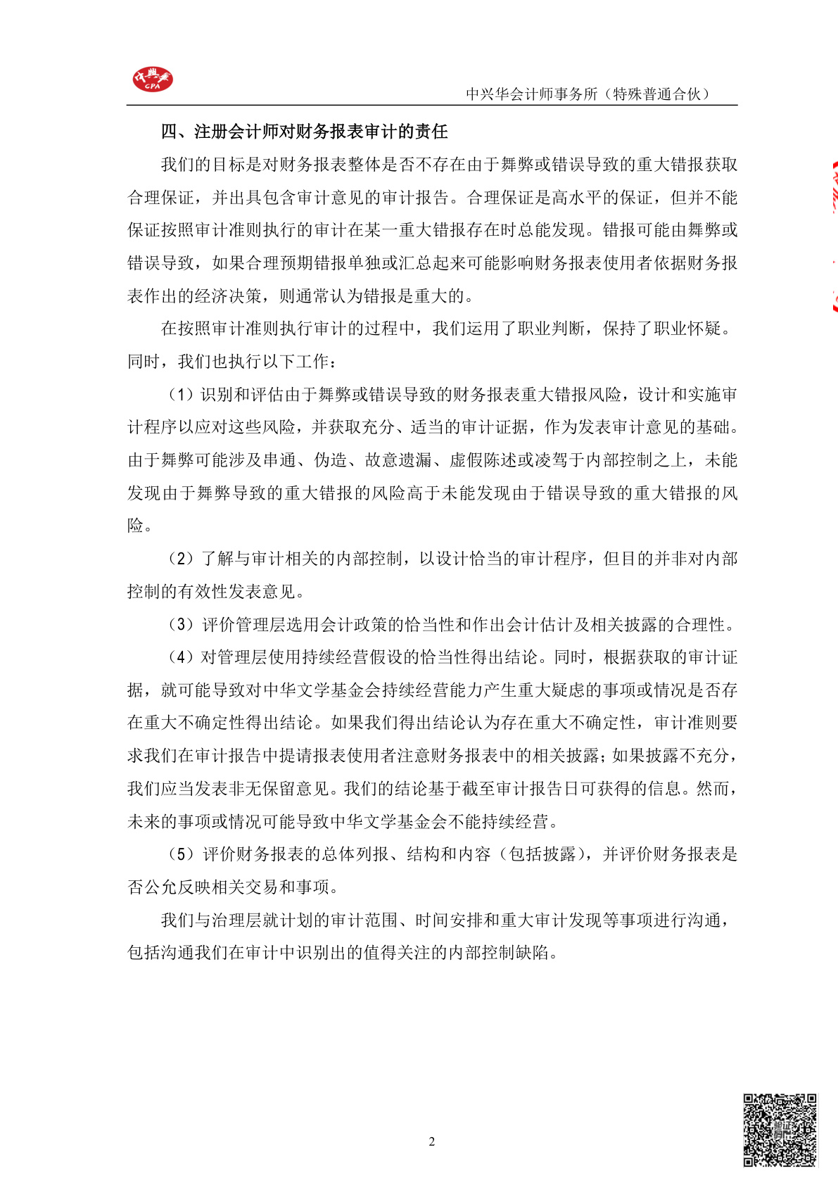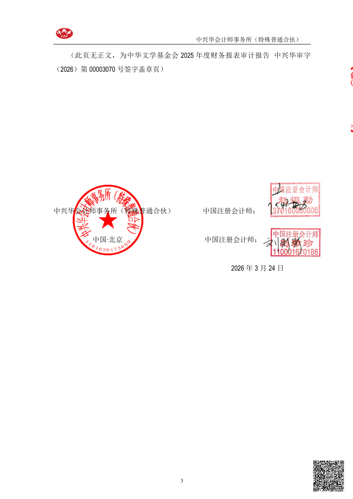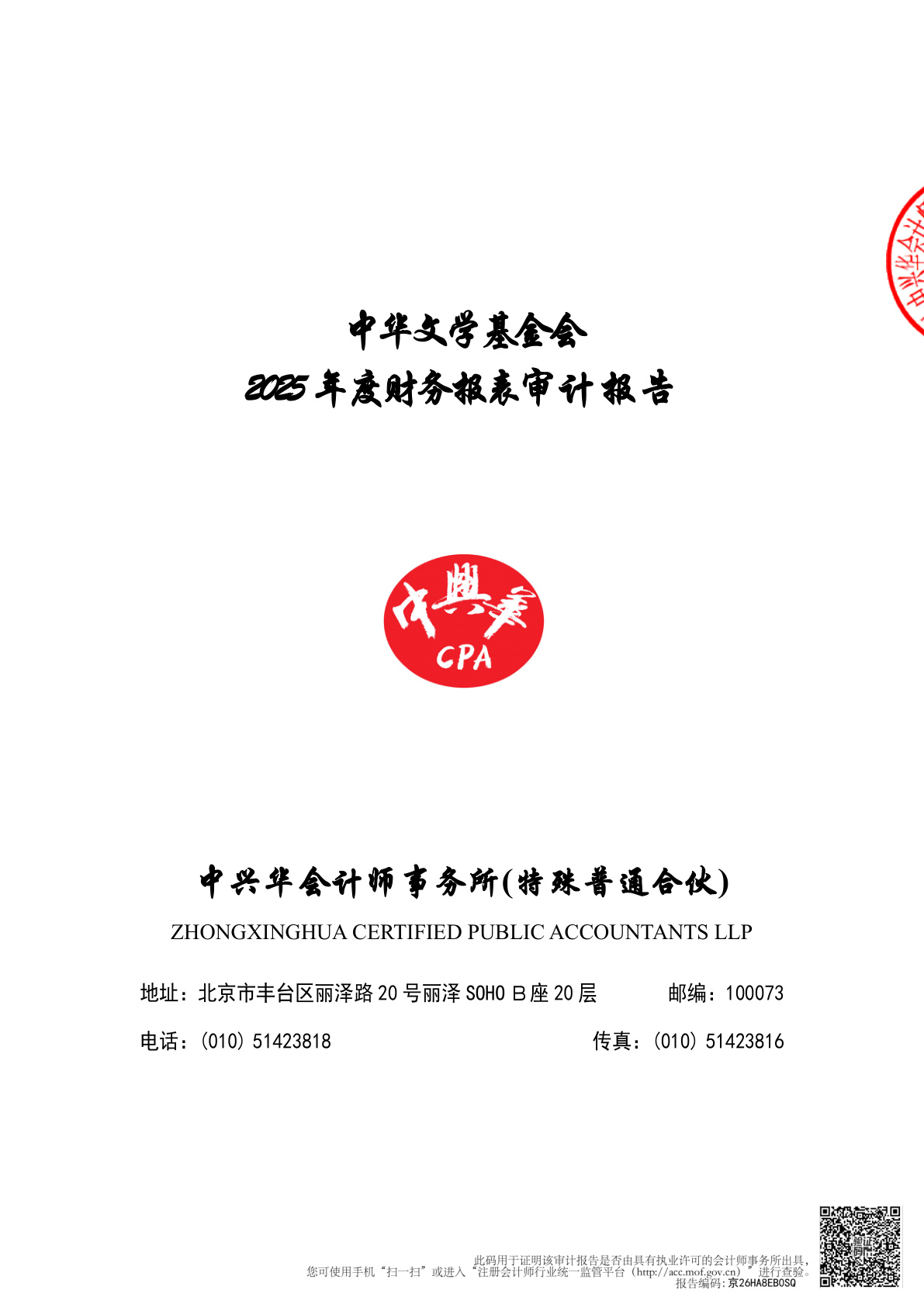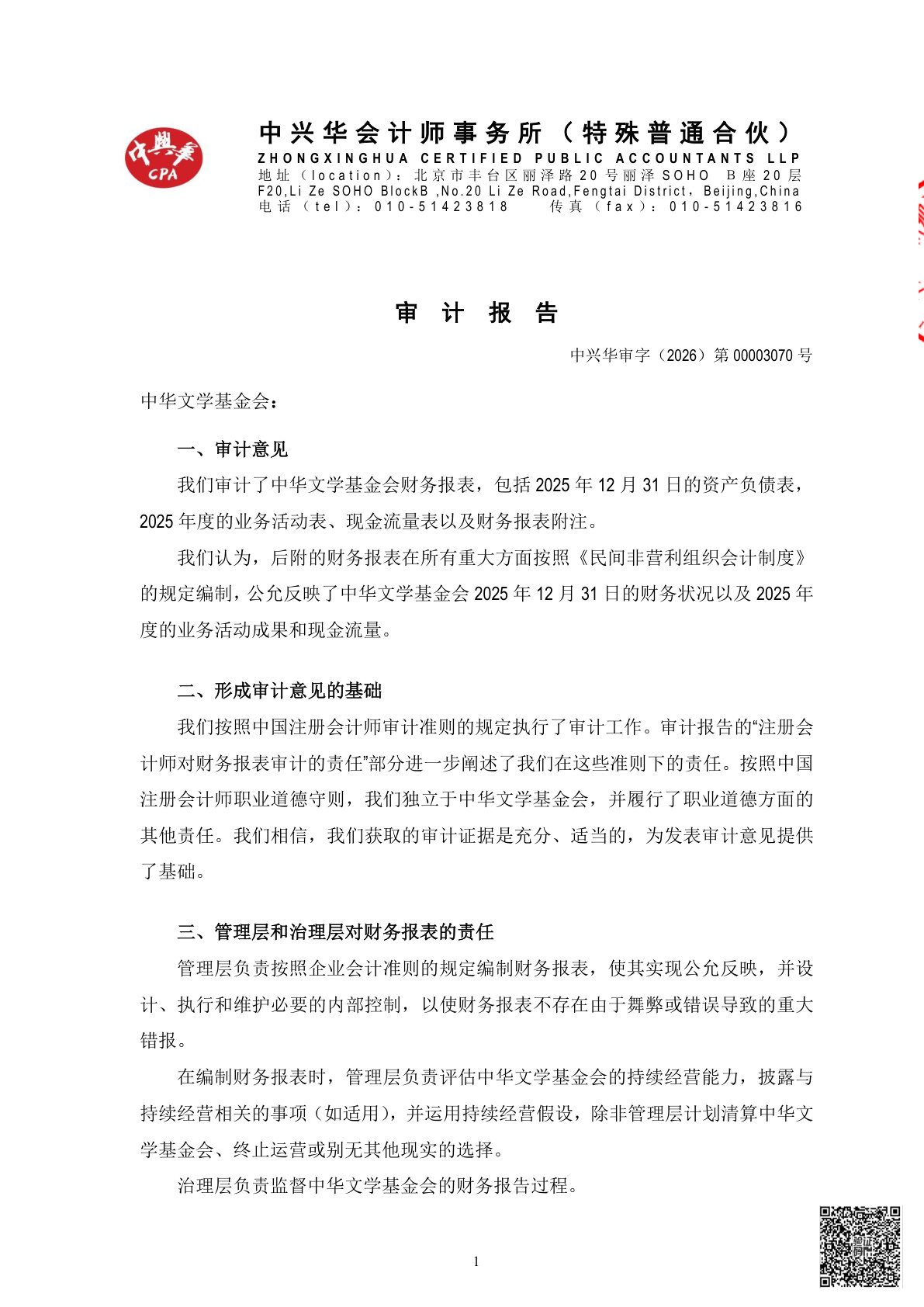 中华文学基金会2025年度财务报表审计报告(第00003070号)