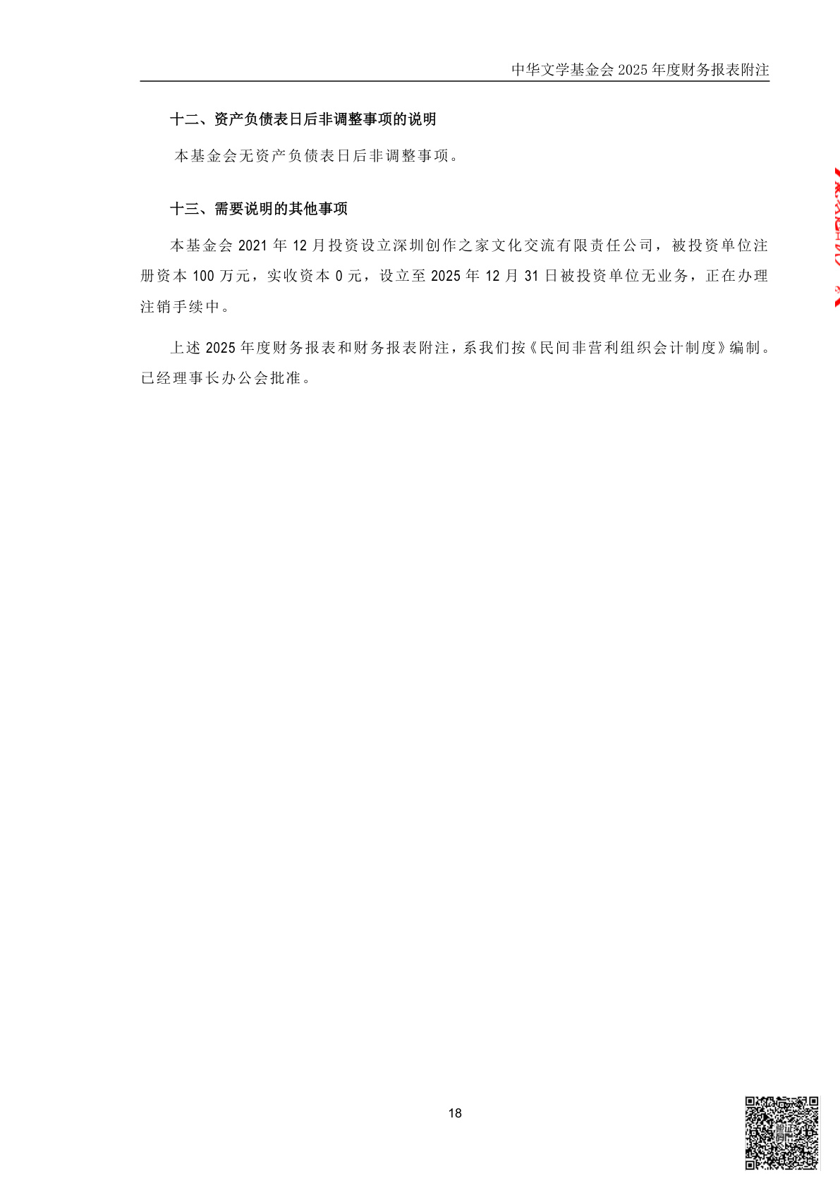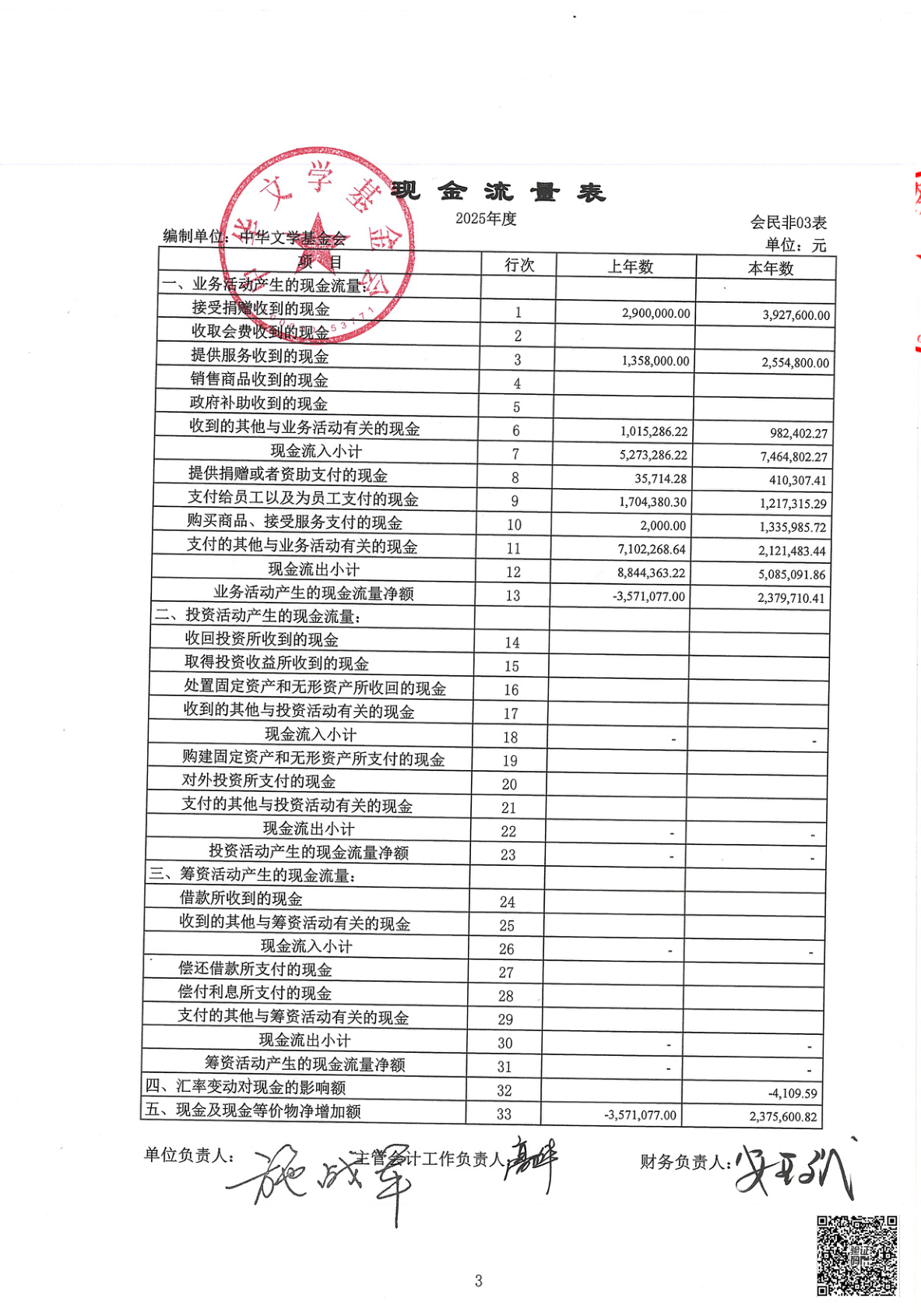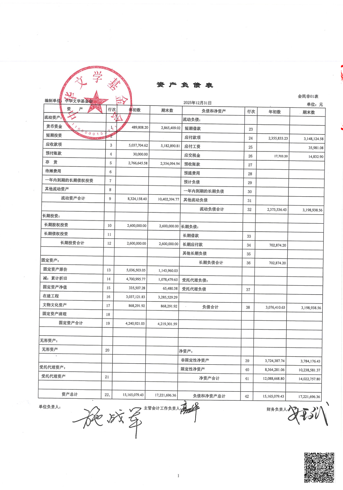 中华文学基金会2025年度财务报表审计报告(第00003070号)