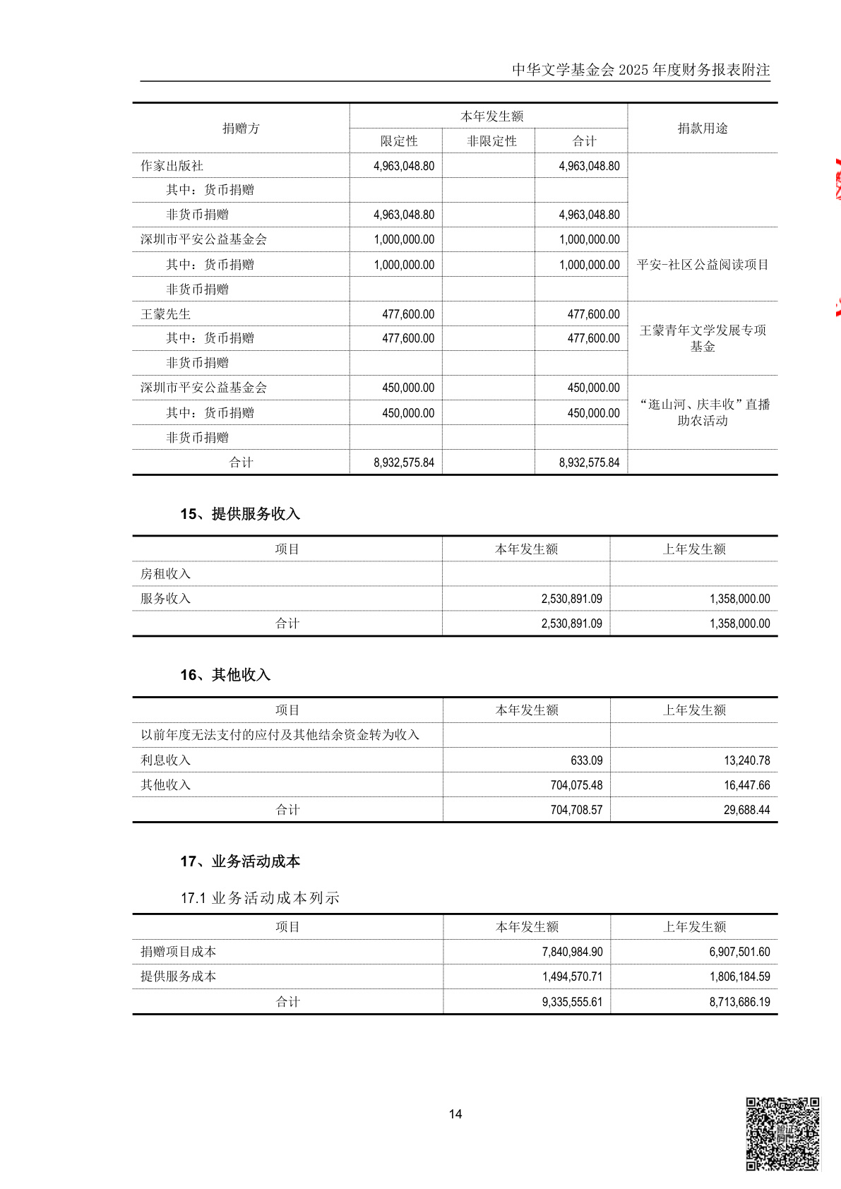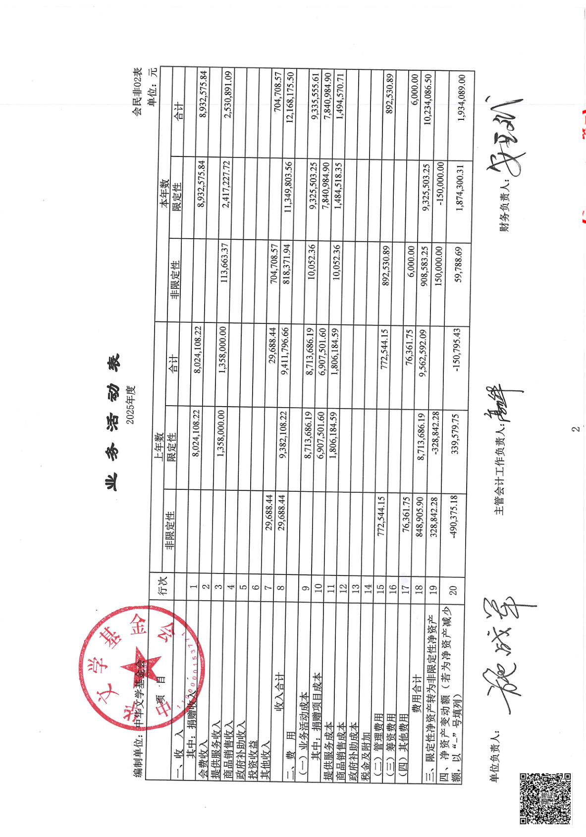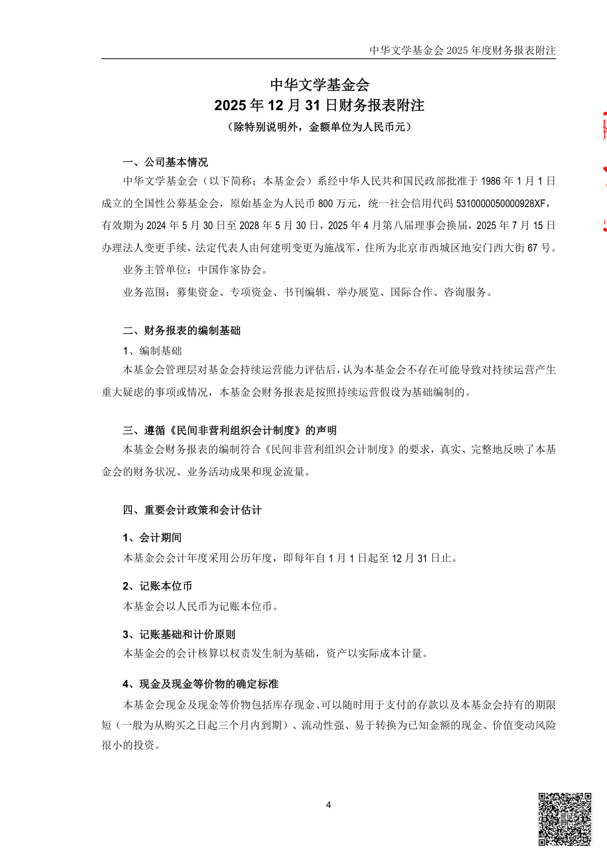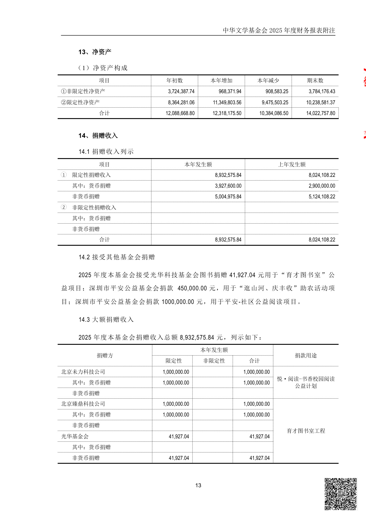 中华文学基金会2025年度财务报表审计报告(第00003070号)